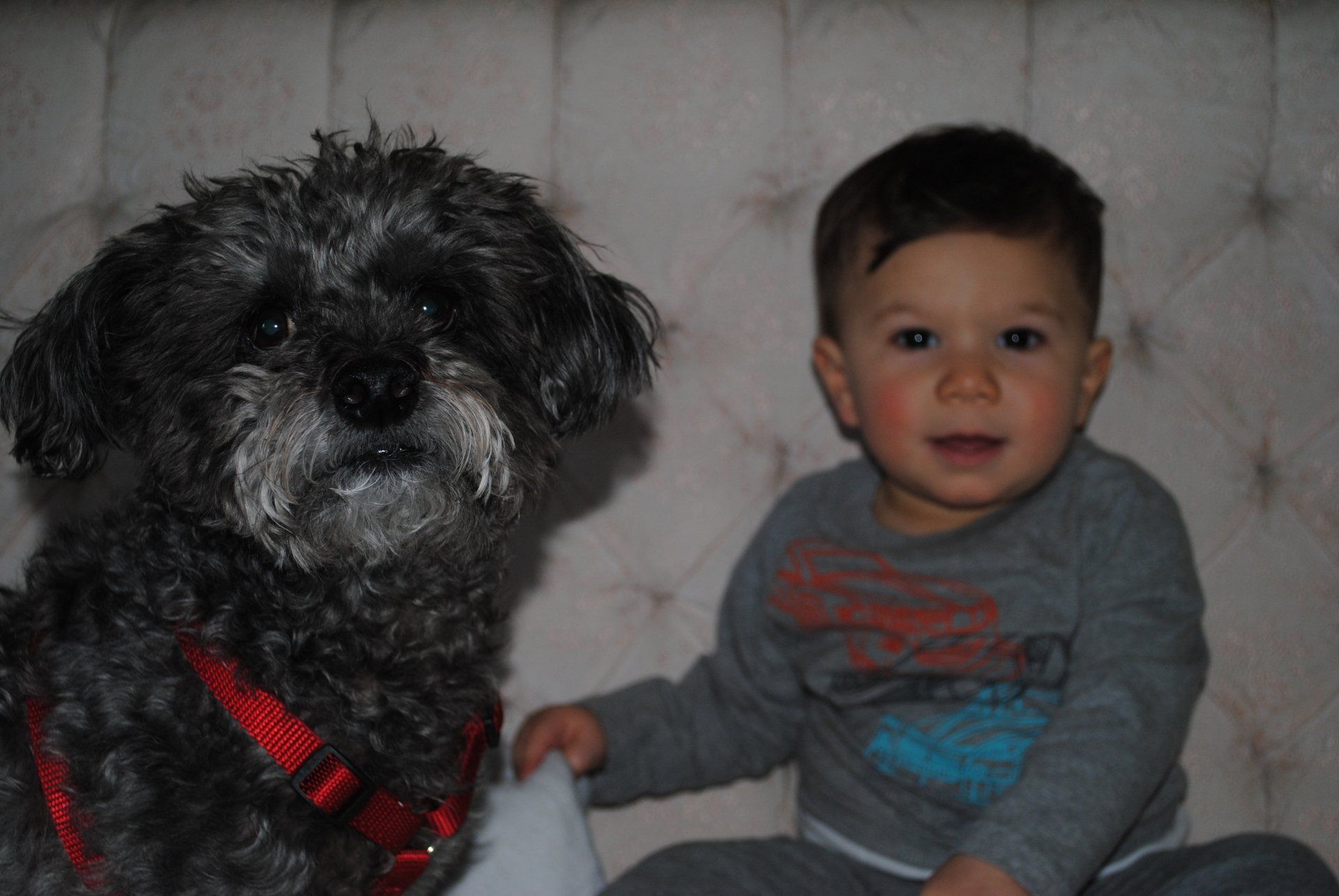 I have always wanted a dog, but growing up my dad had bad asthma so it was even a subject. In 2003 I read about hypoallergenic dogs and did some research. I came across a website that breeded Yorkshire Terrier Poodles. I just had to have Bradley. He was so adorable with pitch black fur tipped with white on his chest and front paws. So Bradley took a flight from Texas to Connecticut. When he landed at Bradley International Airport he was scared and covered in his poo. We took him to the bathroom where we gave him his first bath and decided to name him after the airport. Bradley has been the best dog anyone could ever ask for. He was a very quick learner. He knows many commands, can dance, and can even say "I love you". Brad basically thinks he is human. Our family is made up of me, my husband, our son, and Bradley's first family (which included my parents, brother, sister, and grandmother).