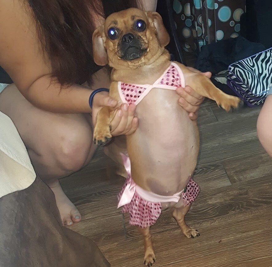 Pugsley Jane was orphaned when she was 3 weeks old after her mother was run over by a vehicle on the street where I live. The first time I laid eyes on her I knew I had to help her. I knew if I didn't take her and raise her, she would most likely die. Pugsley Jane was very tiny and covered in fleas. I immediately took her home with me and began to care for her. That day was 5 years ago (2015) and the bond between Pugsley Jane and I has only grown and gotten stronger. She is not only my dog, she is my child. Pugsley Jane received the bladder surgery at Clinch Mountain Veterinary Services she very much needed, everything went very well with her, and I was able to take her home the next day to begin her recovery.